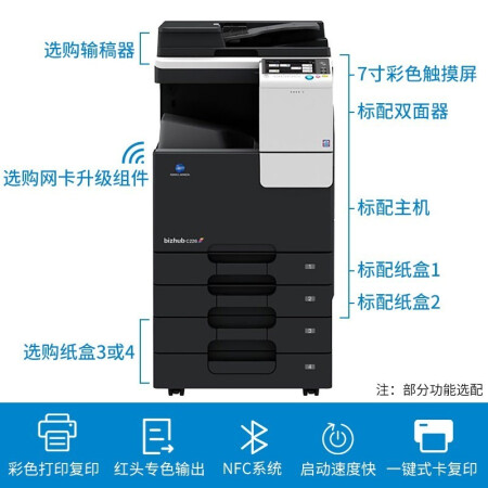 KONICA MINOLTA柯尼卡美能达 a3a4打印机C226商用办公大型A3彩色复印机复合机(标配+输稿器+工作底柜)