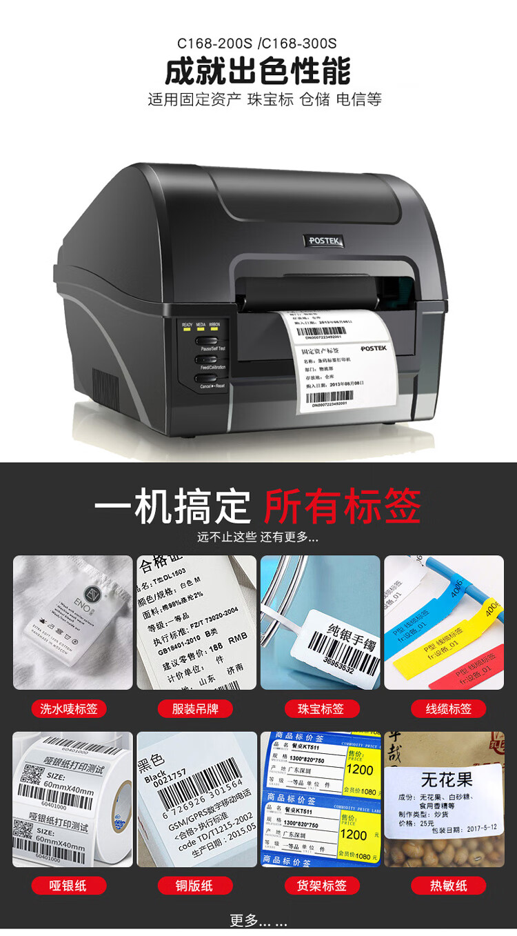 商品名称:博思得POSTEK C168 200s 300s条码打印机热转印不干胶标签打印机 C168/200S(203dpi)
