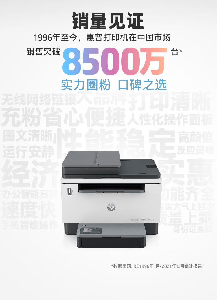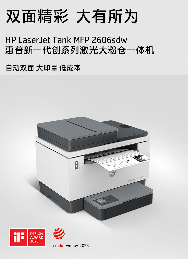 惠普(HP)2606sdw激光无线自动双面多功能一体机连续复印扫描 SOHO商用办公单页成本3分钱