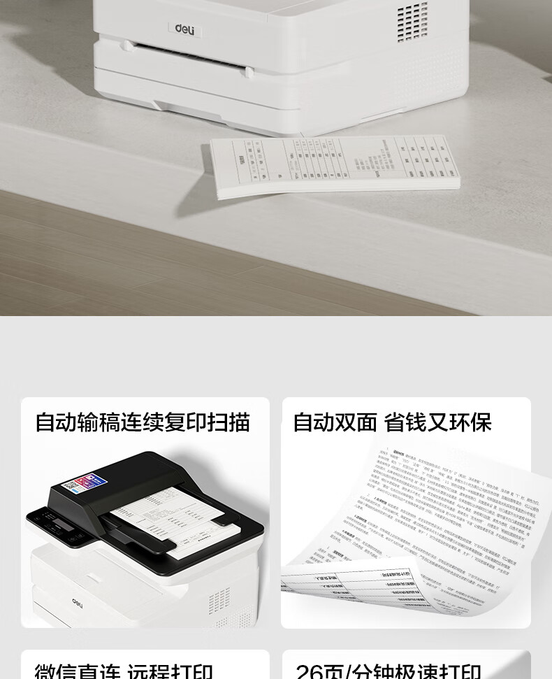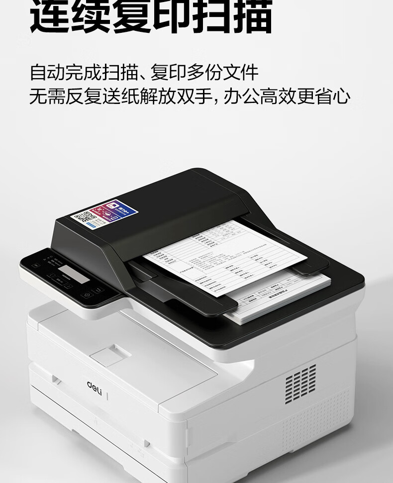 商品名称:得力(deli)M2300ADW黑白办公商用三合一A4打印机复印机扫描机多功能一体机 家用学习作业 无线激光打印机