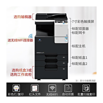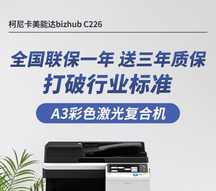 商品名称:柯尼卡美能达 C226 彩色a3激光打印机一体机办公打印复印扫描一体机复合机 C226:盖板+双纸盒(双面打印+网络)