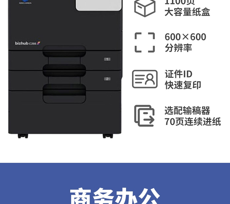 商品名称:KONICA MINOLTA柯尼卡美能达 a3a4打印机C226商用办公大型A3彩色复印机复合机(标配+输稿器+工作底柜)